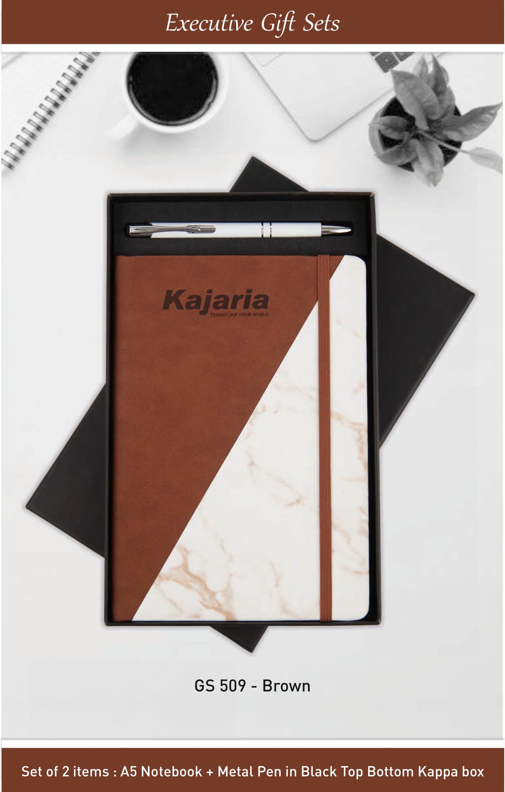 AN-509-BROWN A5 Notebook & Pen KAJARIA