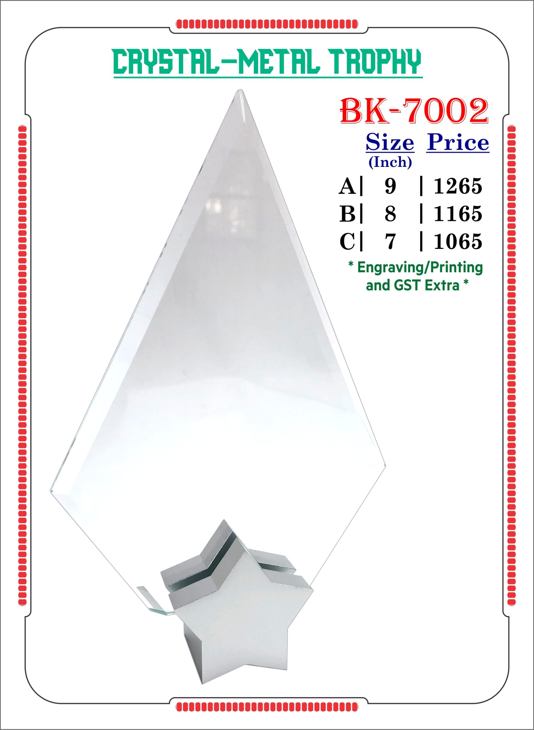 BK-7002 Crystal Metal Trophy