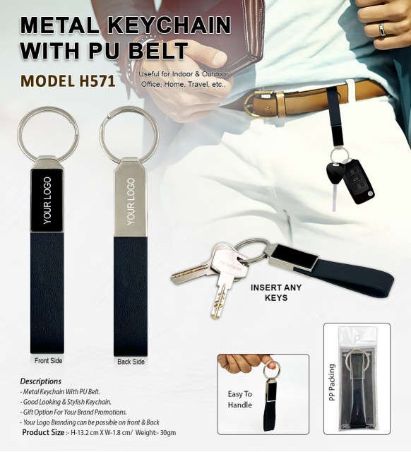 H571 Metal Keychain with PU Belt