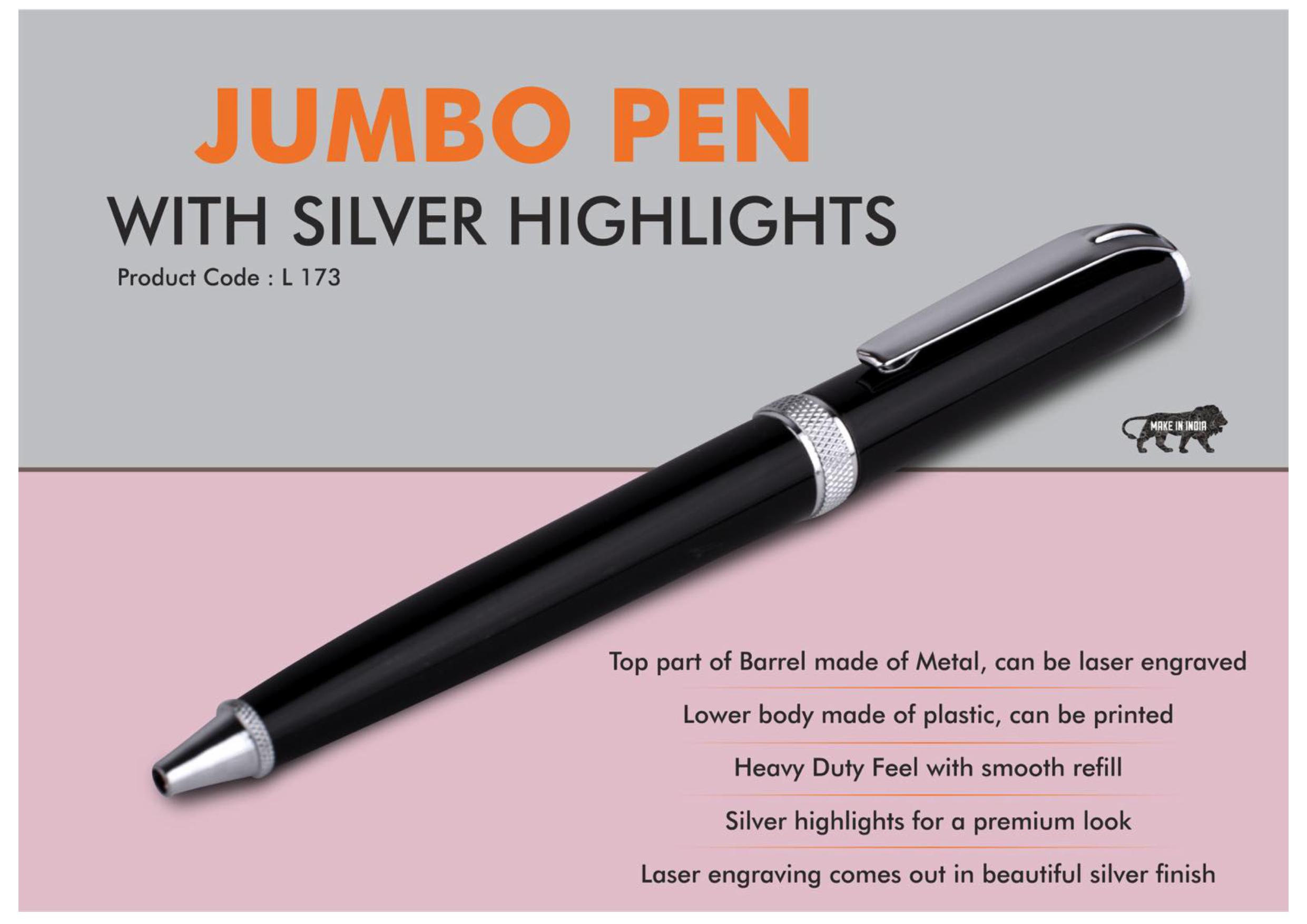 L173 Jumbo pen with Silver highlights | Metal and plastic barrel