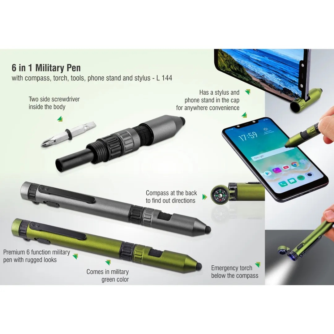 PP-L144 6 in 1 Military Pen with Compass