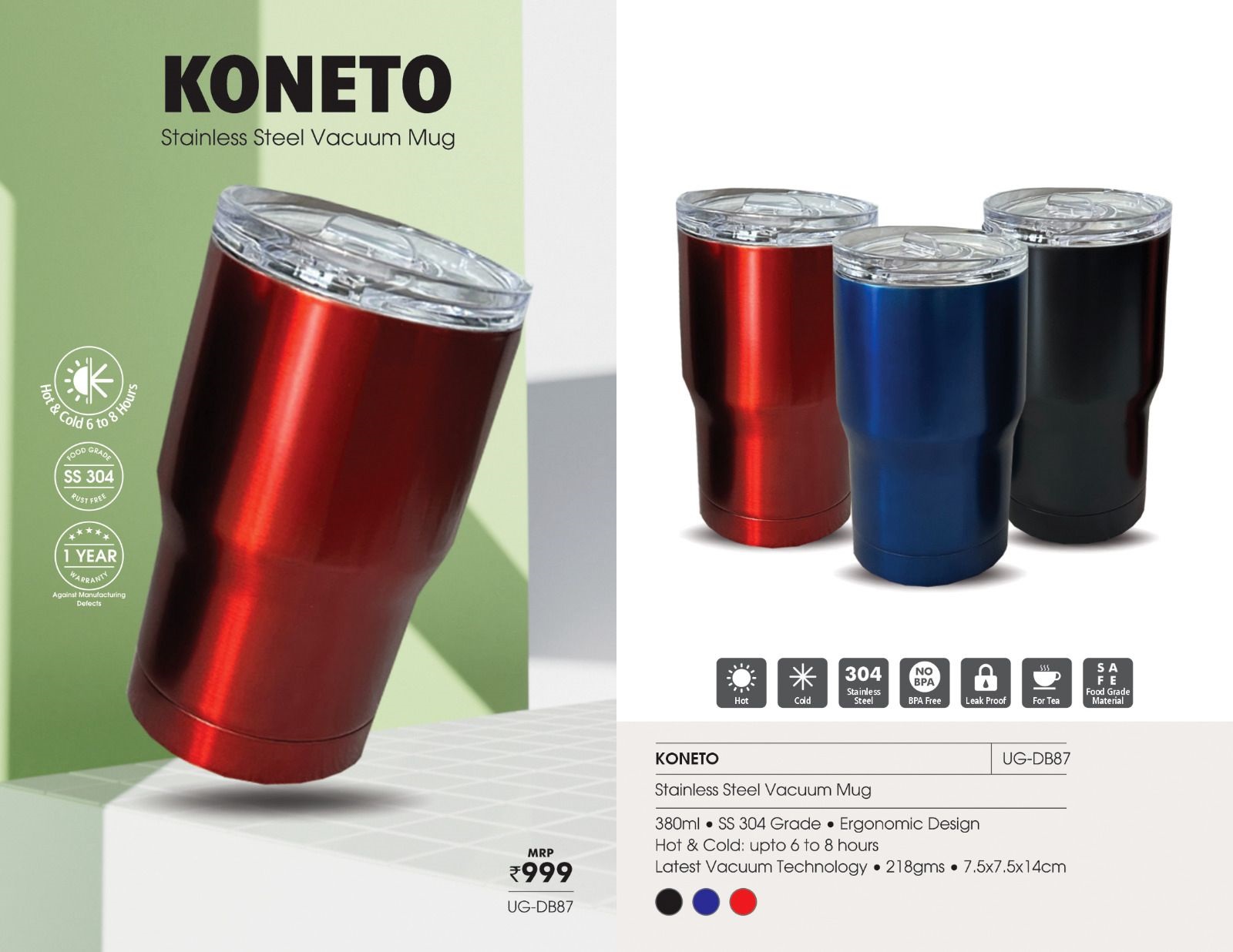 UG-DB87 Koneto SS Vacuum Mug (380ml)