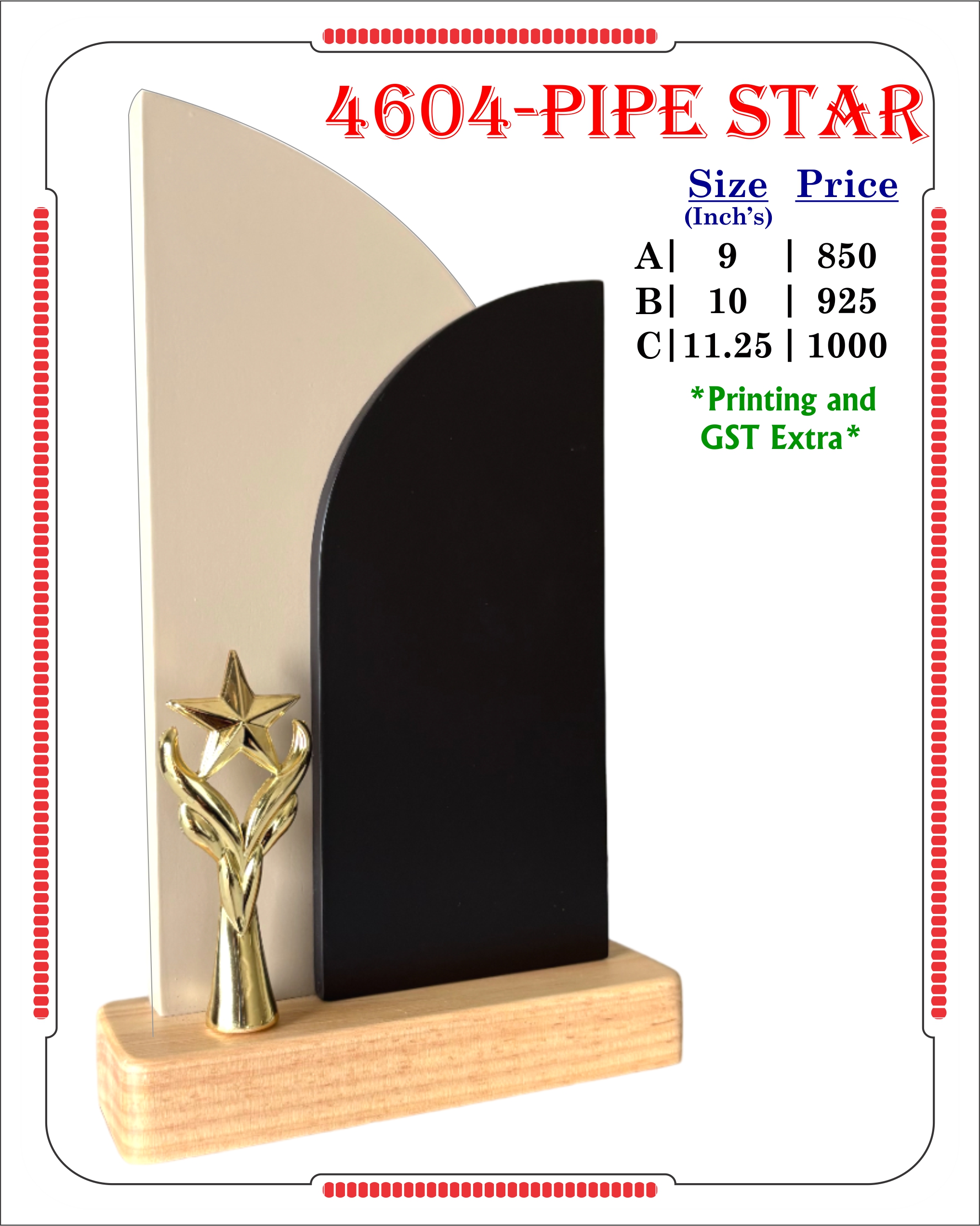 VR-4604-PIPE STAR Wooden Trophy