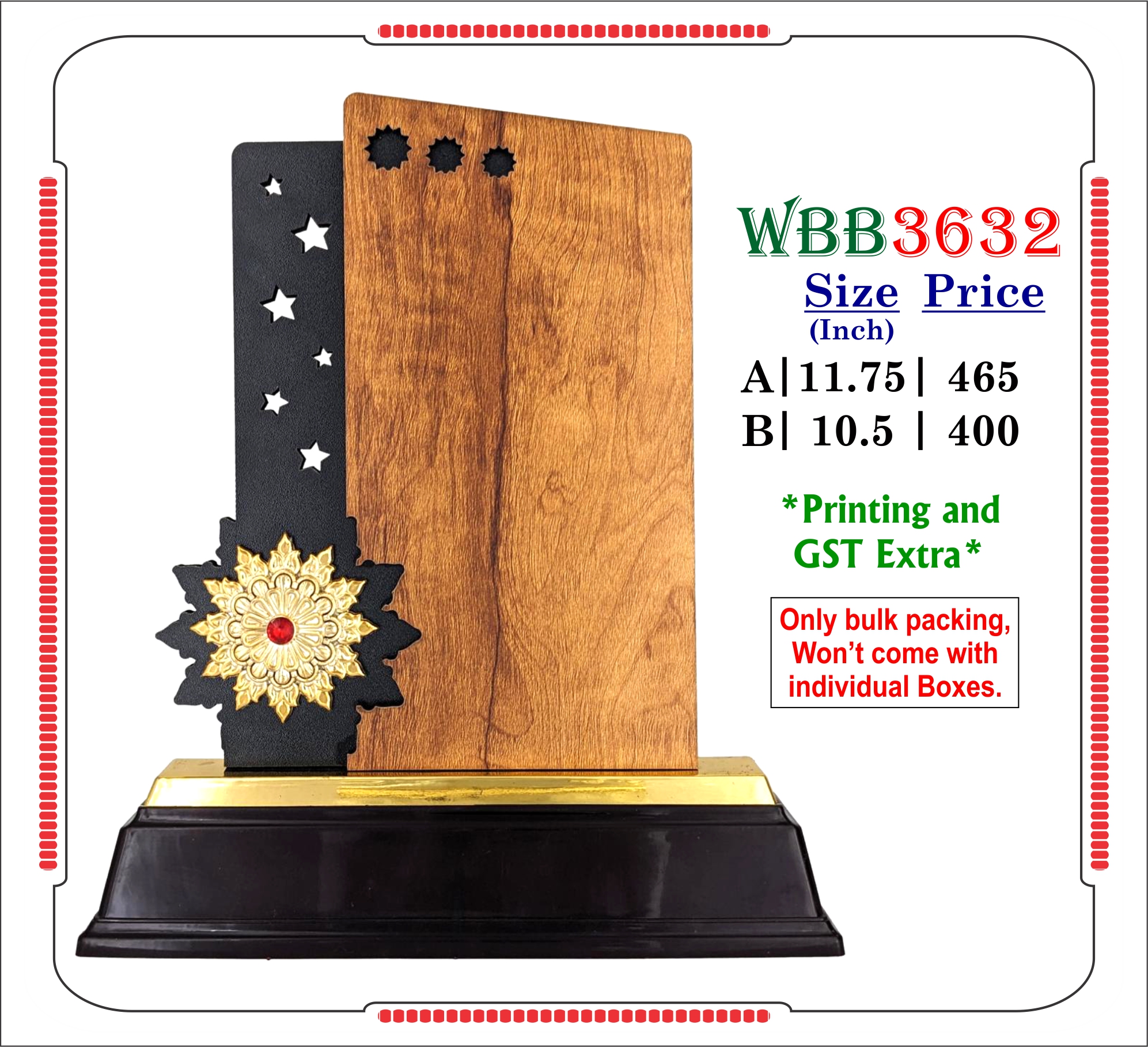 VR-WBB3632 Wooden Trophy
